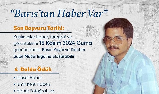 İzmir Büyükşehir Belediyesi tarafından 25’incisi düzenlenen Barış Selçuk Gazetecilik Yarışması için başvurular devam ediyor. Barış Selçuk’un anısını yaşatmak ve genç gazetecileri teşvik etmek amacıyla düzenlenen Barış Selçuk Gazetecilik Ödülleri Yarışması’nda katılımcılar haber, fotoğraf ve görüntülerini, 15 Kasım 2024 Cuma gününe kadar İzmir Büyükşehir Belediyesi Basın Yayın ve Tanıtım Şube Müdürlüğü’ne ulaştırması gerekiyor.
