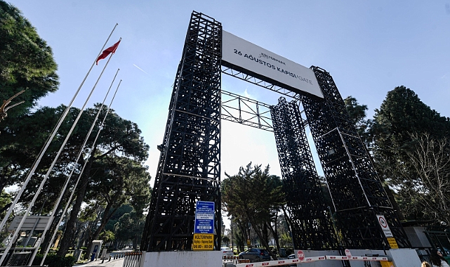 İzmir Büyükşehir Belediyesi, Kültürpark’ın tarihi kapılarından 26 Ağustos Kapısı’nda güçlendirme çalışması yapacak. Türkiye Cumhuriyeti’ni simgeleyen 5 kapı için 2023 yılında ilk adımı atılan restorasyon ve rekonstrüksiyon çalışmaları kapsamında Lozan, Montrö, 9 Eylül ve Cumhuriyet kapıları yenilenerek hem sağlamlaştırıldı hem de görsel açıdan yenilendi.