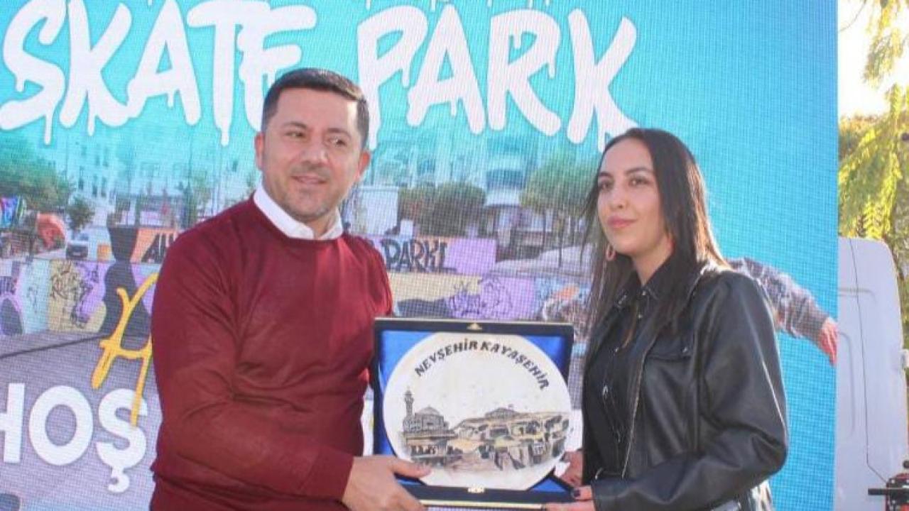 İyi Parti Nevşehir Belediye Başkanı Rasim Arı, parka yaptığı katkılar ve değerli sanat çalışması dolayısıyla Ak Parti Belediye Meclis Üyesi Gülhan Kartal’a teşekkür ederek hediye takdiminde bulundu.