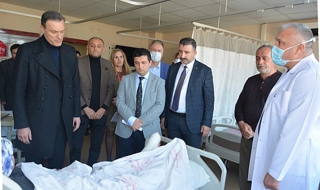 Ziyarette AK Parti Konak İlçe Başkanı Mehmet Sait Başdaş da, depremin yıktığı Adıyaman'dan geldiğini ifade edere, "Yaralarımızı sarana kadar on ilimizde ve nakledilen tüm yurttaşlarımızın yanında olacağız" dedi.