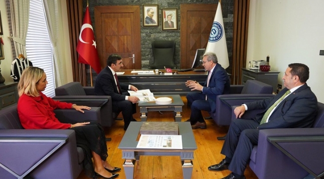 İzmir’e gelen AK Parti Bingöl Milletvekili ve Dış İlişkiler’den Sorumlu Genel Başkan Yardımcısı Cevdet Yılmaz, EÜ Rektörü Prof. Dr. Necdet Budak’ı makamında ziyaret etti. Dış İlişkiler’den Sorumlu AK Parti İzmir İl Başkan Yardımcısı Gözde Keskin’in de bulunduğu görüşmede, Rektör Budak, Devlet Bakanı, Kalkınma Bakanı ve Başbakan Yardımcılığı görevlerinde de bulunan Yılmaz’la EÜ’deki bilimsel faaliyetlerle ilgili bilgi paylaşımında bulundu. Sağlık Bakanlığı tarafından A Plus ilan edilen Tıp Fakültesi Hastanesinin yanı sıra, fakülte, yüksekokul ve bölümlerdeki projeler ve yeşil kampüste uluslararası derece elde eden kampüsteki faaliyetler hakkında bilgi veren Rektör Budak, daha sonra Genel Başkan Yardımcısı Yılmaz ve beraberindekilerle kampüse geçti.