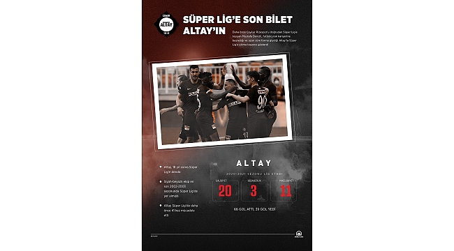 Spor Toto 1. Lig play-off finalinde Altınordu'yu 1-0 yenen Altay, Adana Demirspor ve GZT Giresunspor'un ardından Süper Lig'e yükselen son takım oldu.