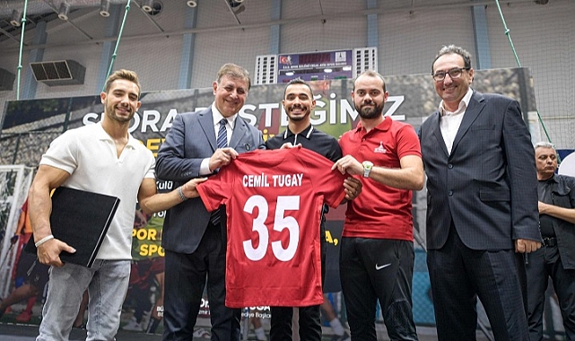 Törende İzmir Amatör Spor Kulüpleri Federasyonu Başkanı Efkan Muhtar, Başkan Tugay’a sporun gelişimine gösterdiği katkıdan dolayı plaket verirken milli sporcular ise Cemil Tugay yazılı 35 numaralı ay yıldızlı milli formayı hediye etti. Törene katılan sporcularla hatıra fotoğrafı çektiren Başkan Tugay, minik sporcuların formalarını imzaladı.