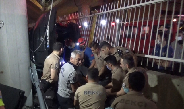 Alınan bilgiye göre, Kamil G. yönetimindeki 50 DF 138 plakalı hafif ticari araç, Bayraklı Mahallesi Cüneyt Sivari Oğulları Sokak'ta viyadükten demir yoluna düştü. Demir korkuluklara çarptıktan sonra düştüğü belirlenen hafif ticari araç, viyadük ayağı ile demir parmaklıklar arasına sıkıştı.