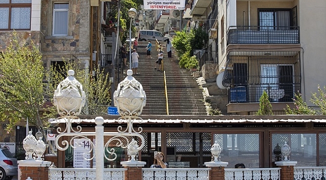 Konak ilçesi Turgut Reis Mahallesi'nde bulunan ve halen Tarihi Asansör olarak hizmet veren yapının üstündeki 308 Sokak'ta, ziyarete gelen vatandaşların da tarihi yapıyla birlikte fotoğraf çektiği 60 basamaktan oluşan merdivenin yerine Büyükşehir Belediyesi yürüyen merdiven yapma kararı aldı.