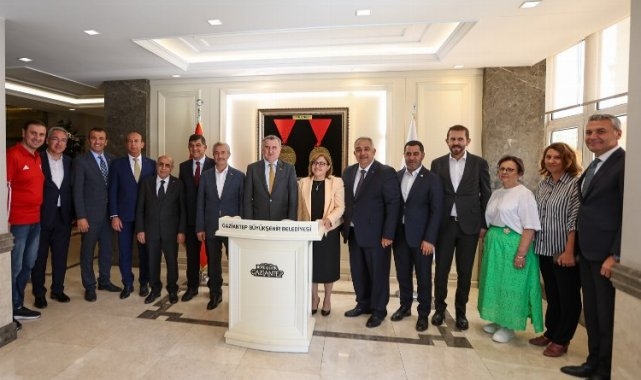 GAZİANTEP (İGFA) - Bir dizi ziyaretlerde bulunmak için Gaziantep'e gelen ve depremden etkilenen Nurdağı ve İslahiye'de yürütülen çalışmaları inceleyen Bakan Osman Aşkın Bak, Başkan Şahin'i ziyaret amacıyla Büyükşehir Belediyesi'ne geldi. Şeref defterini imzalayan Bakan Bak, Büyükşehir Belediyesi tarafından gençlere ve spor altyapısına yönelik yürütülen çalışmalar hakkında bilgi aldı.Bakanlığın verdiği desteklerle Gazi şehirde spor alanında yapılan çalışmaları içeren sunumu Bakan Osman Aşkın Bak'a yapan Başkan Fatma Şahin, tesisleşmelerle beraber "Spor Şehri Gaziantep" için ilerleme kaydedildiğini aktardı.