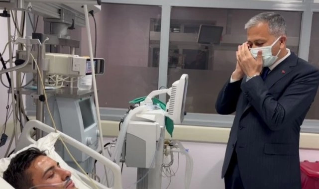 ANKARA (İGFA) - İçişleri Bakanı Ali Yerlikaya, Ankara'daki terör saldırısı sonrası yaralanan polis Alim Reis Demirel ve Erkan Karataş'ı tedavi gördükleri hastanede ziyaret etti.