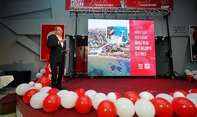 “Ayvalık İçin Daima İleriye, İşimiz Gücümüz Ayvalık” sloganıyla yaklaşık 2 saat boyunca sahnede kalan Başkan Ergin, öncelik verecekleri projeleri ve alanları anlattı. Çağın gereklerini göz önüne alarak yeni nesil belediyecilik anlayışı ile hizmet verecekleri anlatan, yerinde kentsel dönüşümlerinin yapılmasından, spor merkezlerine, barınak, ulaşım, otopark gibi konuların sunumunu yapan Mesut Ergin’in projeleri ayakta alkışlandı.