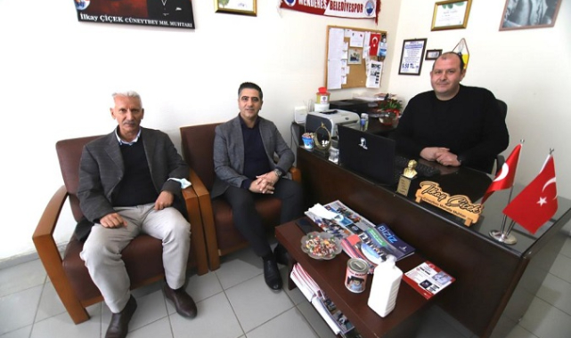 Menderes Belediye Başkanı Mustafa Kayalar, muhtar ziyaretlerine ilçe merkezindeki muhtarlarla devam etti.