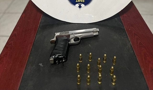 Araçta yapılan aramada ruhsatsız tabanca ile 10 fişek ele geçirildi.