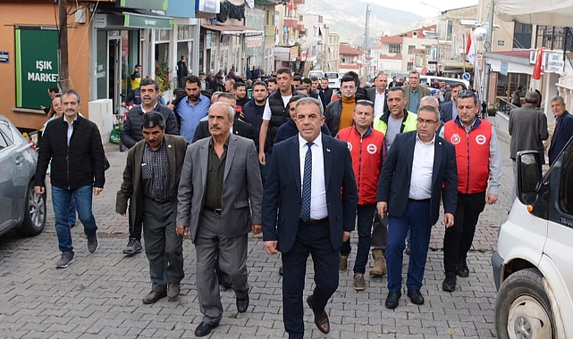 Beydağ Belediye Binası önünden meclis üyeleri, muhtarlar, STK temsilcileri ve partililerle birlikte CHP İlçe Binasına kadar kalabalık eşliğinde giden Feridun Yılmazlar parti binasının önünde CHP İlçe Başkanı Özlem Kaynak’a aday adaylık dosyasını teslim etti.