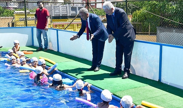 İzmir Büyükşehir Belediye Başkanı Tunç Soyer’in sporu kentin tamamına yayma hedefi doğrultusunda geçen yıl üç noktada kurulan portatif havuz sayısı bu yaz 7’ye çıktı. Konak’ta Pazaryeri ve Kadifekale, Bornova’da Meriç, Çiğli’de Yakakent, Beydağ’da Leylak, Menemen’de İsmet İnönü ve Kiraz’da Yeni mahallelerindeki havuzlarda 6 ile 13 yaş arasındaki çocuklara yüzme eğitimi veriliyor.