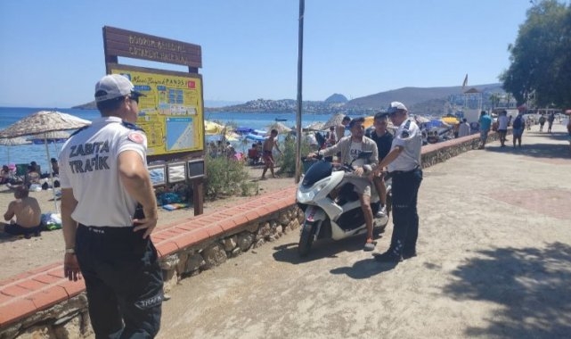 MUĞLA (İGFA) - Bodrum Belediyesi Zabıta Müdürlüğü'ne bağlı Trafik Zabıta ekipleri, turizm sezonu ile birlikte yaya yoğunluğunun oluştuğu bölgelerde, motosiklet ve scooter sürücülerine yönelik uygulamalarını sürdürüyor.