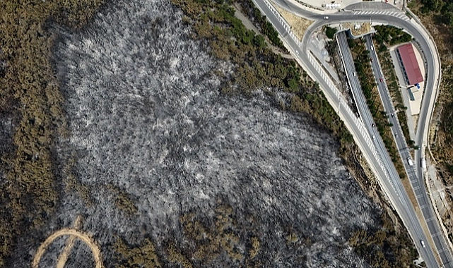 Yangında zarar gören alan drone ile havadan görüntülendi.