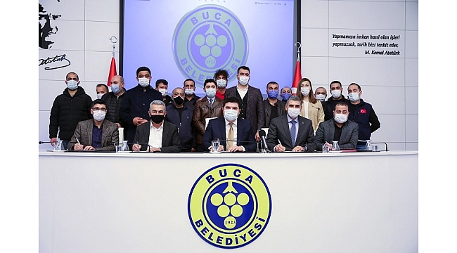 Buca Belediyesi ile DİSK Genel İş Sendikası 5'nolu Şube arasında anlaşma sağlanan Toplu İş Sözleşmesi’nin imza töreni gerçekleşti. Belediye şirketi BUCAMAR’da görevli 1.300 personeli ilgilendiren sözleşmede, en az ücret alan personel maaşı 5 bin TL olurken, işçiler çok sayıda yeni sendikal hak kazandı. İmza töreninde konuşan Buca Belediye Başkanı Av. Erhan Kılıç, “Bucamızda el birliğiyle iyi bir belediyecilik yapacağız” dedi.
