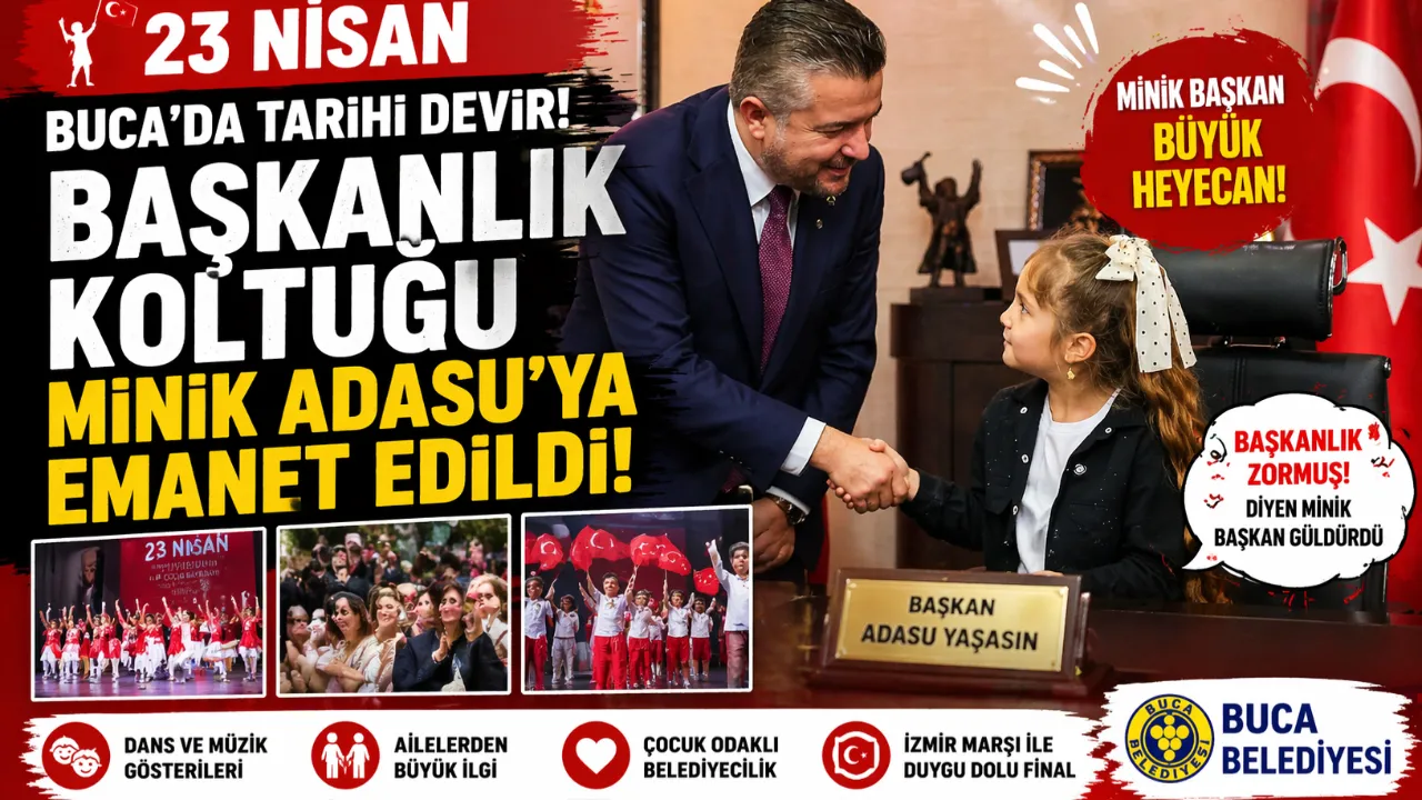 Buca Belediyesi, Görkem Duman, Adasu Yaşasın, 23 Nisan Buca, çocuk başkan, İzmir haberleri, çocuk bayramı etkinlikleri, belediye koltuk devri, çocuk dostu şehir, Buca gündem