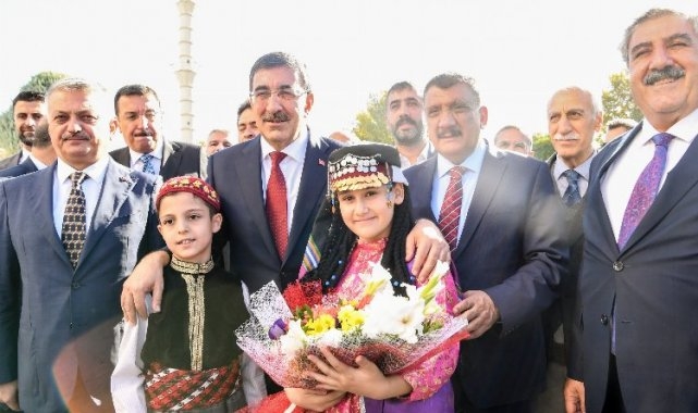 Konuşmaların ardından Büyükşehir Belediye Başkanı Selahattin Gürkan, Cumhurbaşkanı Yardımcısı Cevdet Yılmaz'a çeşitli hediyeler takdim etti.