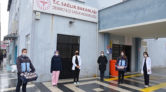 "İnsanlığın koronavirüse karşı verdiği amansız mücadelede Demirci cephesinde ön safta mücadele eden sağlık çalışanlarımızın bağışıklığını güçlendirmek ve onlara teşekkür edebilmek için şifalı hünnap meyvemizden ayrıca organik elmadan hazırlayarak dağıttık. Tüm sağlık çalışanlarımıza emekleri için teşekkür ediyoruz."