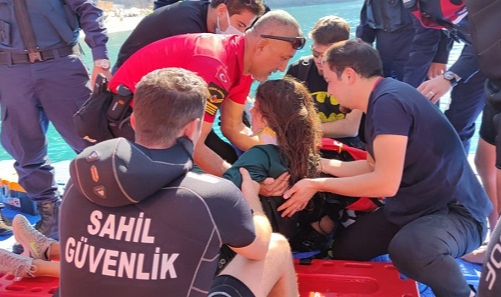 İlk müdahalesi dalgıç personel tarafından yapılan Ukraynalı pilot, bilinci açık bir şekilde, Belcekız Plajı'nda hazır bekleyen 112 Acil Sağlık personeline teslim edildi.