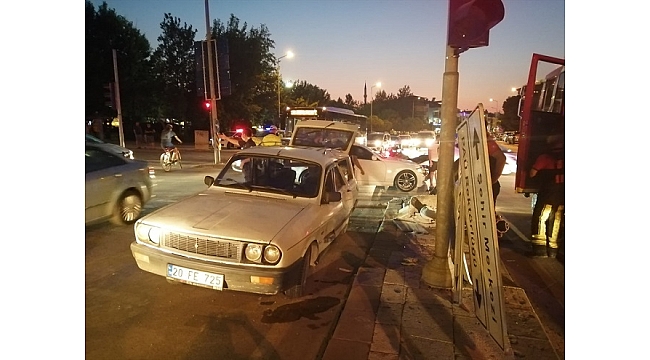 İmdat Kartal idaresindeki 20 FE 725 plakalı otomobil Çamlaraltı Mahallesi Üniversite Caddesi'nde karşı yönden gelen Fikri Çiftçi yönetimindeki 20 AAH 474 plakalı otomobil ile çarpıştı.