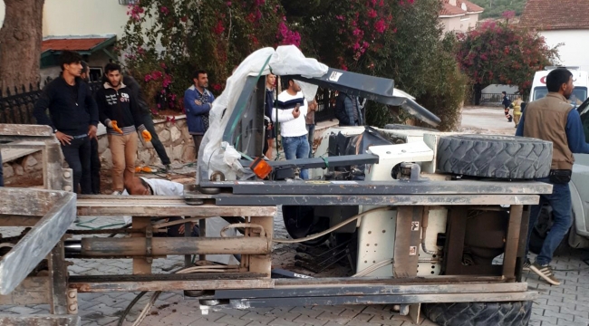 İZMİR (İHA) - İzmir'in Çeşme ilçesinde kullandığı forklift devrilmesiyle altında kalan sürücü hayatını kaybetti.