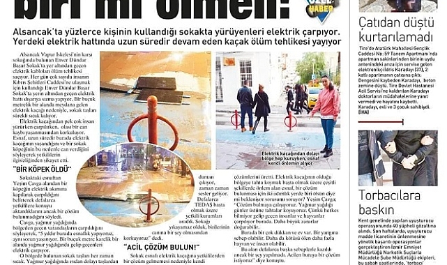 Yaşanan acı hadisenin ardından Ege Telgraf, beş sene önceki arşivlerini ortaya çıkardı. 19 Ocak 2019 tarihli Ege Telgraf gazetesinde, dönemin muhabirlerinden Utkucan Akkaş’ın ‘Çözüm için illa biri mi ölmeli’ başlıklı haberiyle gündeme getirdiği konu, ‘Tam 5 yıl önce uyardık’ dedirtti. Akkaş’ın usta kalemiyle hazırlanan haberde, “Alsancak Vapur İskelesi’nin karşı sokağında bulunan Enver Dündar Başar Sokak’ta yer altından geçen elektrik kabloları ölüm tehlikesi saçıyor. Her gün çok sayıda insanın Kıbrıs Şehitleri Caddesi’ne ulaşmak için kullandığı Enver Dündar Başar Sokak’ta yerin altından geçen elektrik hattı dışarıya sızma yapıyor. Bir buçuk metrelik bir alanda meydana gelen elektrik kaçağı nedeniyle, sokak taşları sürekli sıcak kalıyor. Elektrik kaçağından pek çok insan yürürken çarpılırken olası bir can kaybı yaşanmasından korkuluyor. Esnaf, uzun süredir burada elektrik kaçağının yaşandığını ve bir sokak köpeğinin bu nedenle can verdiğini söyleyerek yetkililerin ilgisizliğinden şikayet etti” ifadeleri yer almıştı.