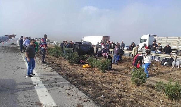 Hatay'dan Siirt'e yakınlarının düğününe gidenleri taşıyan Umut Kurt idaresindeki minibüs, Tarsus-Adana-Gaziantep (TAG) Otoyolu'nun Nurdağı mevkisinde, iddiaya göre arka lastiğinin patlaması sonucu kontrolden çıkarak refüje devrildi.