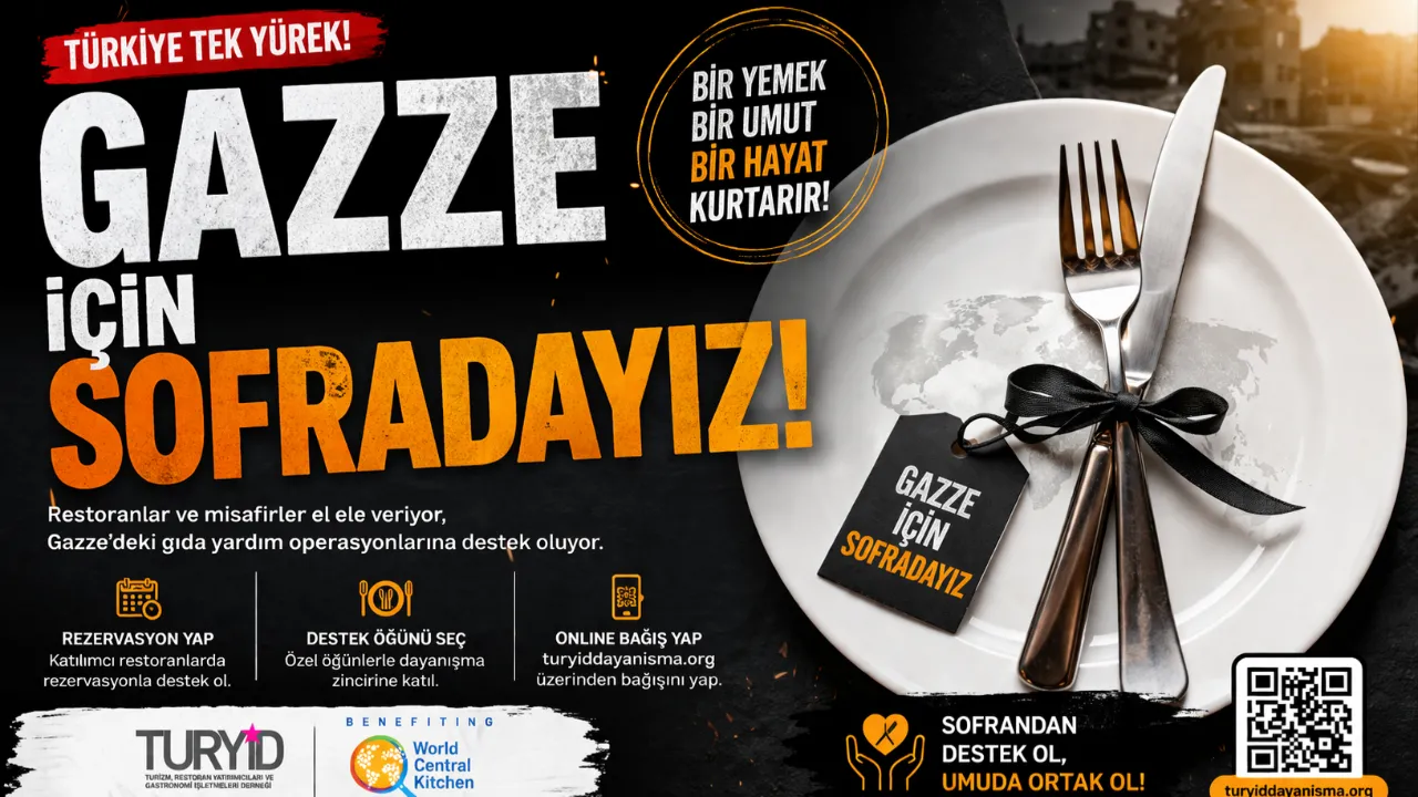Türkiye’de yeme-içme sektörü, Gazze için önemli bir dayanışma hareketine imza attı. Turizm, Restoran Yatırımcıları ve Gastronomi İşletmeleri Derneği (TURYİD), “Gazze İçin Sofradayız” kampanyasını kamuoyuna duyurdu. Kampanya kapsamında restoranlar, işletmeler ve vatandaşlar aynı amaç etrafında birleşerek insani yardım sürecine katkı sağlayacak.
