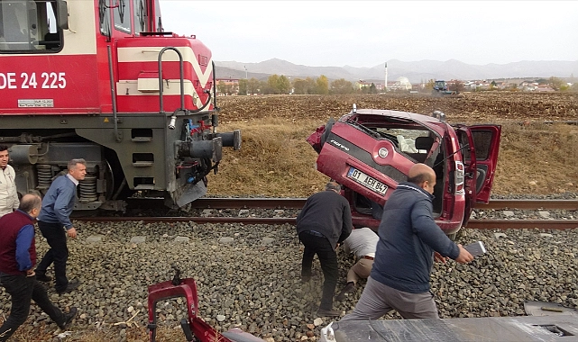 Araç, çarpmanın ardından yaklaşık 160 metre trenin önünde sürüklendi. Kazada, araç sürücüsü yaralandı.