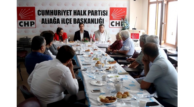 CHP İzmir Milletvekili Kamil Okyay Sındır, CHP İzmir İl Başkanı Deniz Yücel, CHP Aliağa İlçe Başkanı Özlem Şan Oğuzhan, ilçe yöneticileri ve Aliağa Belediye Meclis Üyeleri, Aliağa CHP İlçe Başkanlığı’nda bir araya geldi, Aliağa’da yaşanan sıkıntılar, Aliağalı vatandaşların beklentileri ve talepleri masaya yatırıldı. CHP heyeti ilçe programından sonra pazarcı esnafını ziyaret etti, esnafın sorunlarını dinledi, taleplerini aldı.