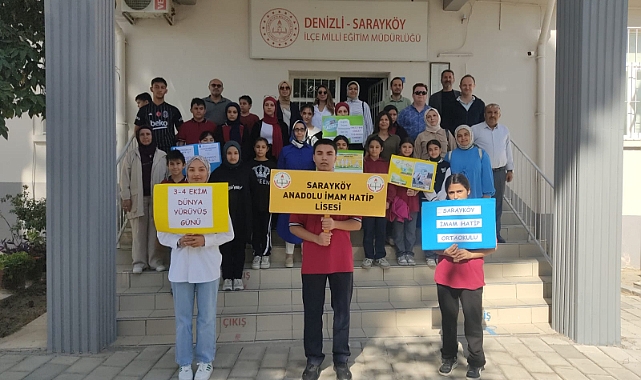 Denizli’de Dünya Yürüyüş Günü etkinlikleri kapsamında Sarayköy Anadolu İmam Hatip Lisesi öğretmen ve öğrencileri ‘Hareket Ediyoruz, Sağlıklı Kalıyoruz” sloganı ile ilçe sokaklarını yürüdü