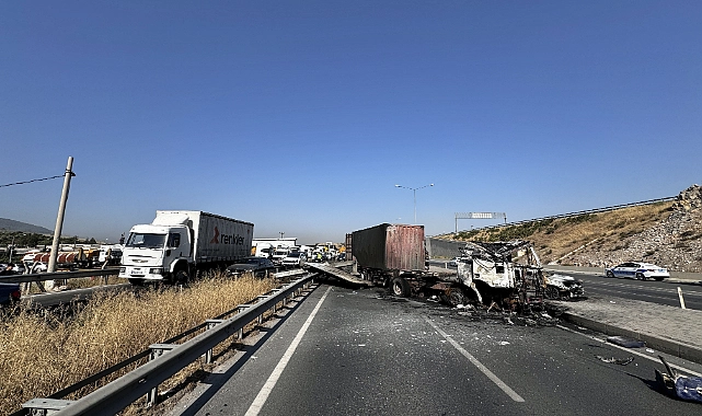 İzmir'de tır, minibüs ve otomobilin çarpışarak yanması sonucu 5 kişi yaralandı