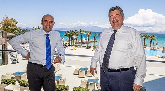 İzmir Büyükşehir Belediye Başkanı Tunç Soyer ile Çeşme Belediye Başkanı Ekrem Oran koronavirüs salgını nedeniyle kan kaybeden Çeşme'deki turizm temsilcileriyle buluştu. İzmir Büyükşehir Belediyesi Genel Sekreteri Dr. Buğra Gökçe ve belediye bürokratlarıyla turizmcilerin taleplerini dinleyerek önerilerini alan Başkan Soyer, ilçenin yaşam kalitesini yükselten çalışmalara imza attıklarını söyleyerek, hayata geçirdikleri turizm projelerini anlattı.