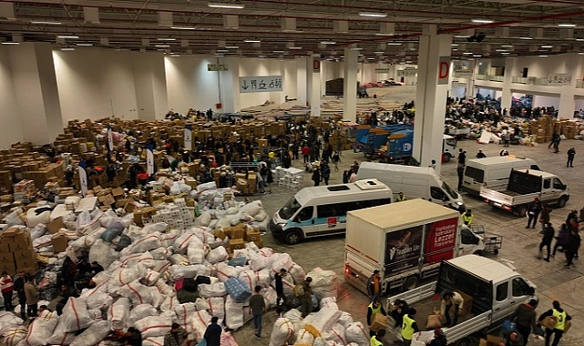 Deprem bölgesine ulaştırılmak üzere 11 tır, iki uçak ve bir gemiyle toplamda 42 bin 830 battaniye, 2 bin 532 elektrikli ısıtıcı, 250 kömür sobası, 2 bin paket bebek bezi, 2 bin 480 yorgan, 3 bin yastık, 128 paket bebek maması, 3 bin 960 paket hijyenik ped, 64 bin 61 giyim malzemesi, 810 çift çizme, 400 yağmurluk, 3 bin 11 uyku tulumu, 2 bin 360 uyku matı, 6 bin 843 paket hijyen paketi, bin 286 gıda kolisi, 51 bin 956 su, 200 çadır, 500 çadır zemin malzemesi, 290 kamp sandalyesi, 24 koli anne bebek kolisi, 10 bebek yatağı, 9 bin 650 cerrahi maske, 10 koli ilk yardım malzemesi, 10 ton yakacak, 500 hasta bezi, 200 powerbank, 144 adet 5 litre su, bin 200 adet 1,5 litre su, 514 yatak süngeri gönderildi.