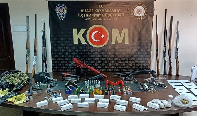 Adreslerdeki aramalarda çok sayıda dinamit lokumu, 39 tabanca, 20 tüfek, 1549 fişek, torna makinesi, 1043 uyuşturucu hap, 612 gram esrar, 14 senet, 7 namlu açma aparatı, 3 silah kabı ve çok sayıda tabanca parçası ele geçirildi.