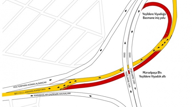 İzmir Büyükşehir Belediyesi Ulaşım Koordinasyon Merkezi tarafından (UKOME) alınan karara göre Mürselpaşa Bulvarı’nın Yeşildere Caddesi’nden Dokuz Eylül Meydanı’na çıkan bölümü, 23 Eylül 2019 Pazartesi günü saat 10.30’da trafiğe kapatılacak. Temizlik çalışmaları 2 adet 2,2 metre çapındaki kolektör hattının içinde gerçekleştirilecek. 20 gün sürecek çalışmalar kapsamında Yeşildere üzerinden Dokuz Eylül Meydanı’na (Basmane) gitmek isteyen araçlar bu yol yerine İzmir Büyükşehir Belediyesi Meslek Fabrikası (Eski DGM binası) önünden limana giden güzergahı izleyecek. Dokuz Eylül Meydanı’ndan Bornova/Karşıyaka yönüne gitmek isteyen araçlar ise trafiğe kapatılan yolu ters istikamette kullanacak.