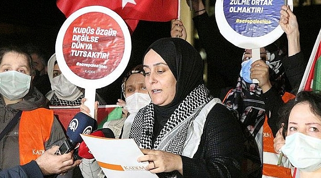 KADEM Yönetim Kurulu Üyesi Sevim Zehra Can Kaya, gazetecilere yaptığı açıklamada, dünyanın artık rutin hale gelen İsrail saldırılarından bir yenisine daha şahitlik ettiğini belirterek, İsrail'in, sistematik işgal politikasını Şeyh Cerrah Mahallesi'nde Filistin halkının evlerini gasbederek sürdürürken, fanatik grupların Birlik Bayramı adı altında Mescid-i Aksa'ya yönelik baskın girişiminin, Kudüs Müslümanlarının, kadın-erkek omuz omuza canları pahasına verdikleri mücadele ile engellendiğini söyledi.