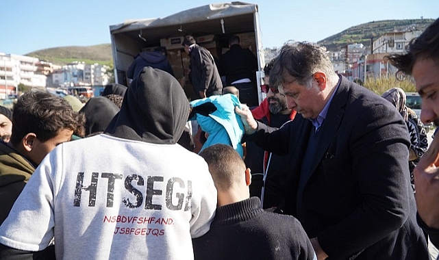 Deprem bölgesinde yaraları sarmaya ve vatandaşa destek olmaya çalışan Karşıyaka Belediye Başkanı Dr. Cemil Tugay, ulaştırılan yardım malzemelerini vatandaşlara dağıtmayı sürdürüyor.