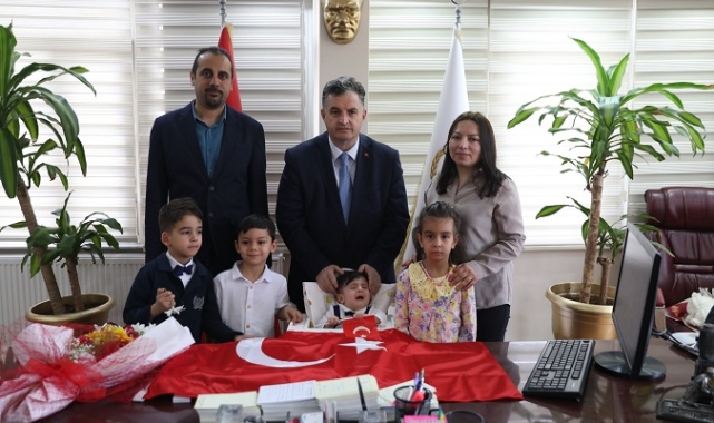 Kınık Belediye Başkanı Dr. Sadık Doğruer 23 Nisan Ulusal Egemenlik ve Çocuk Bayramı nedeniyle İzmir Bergamalı SMA TİP 1 hastası Kaan Efe bebeği makamında ağırladı.