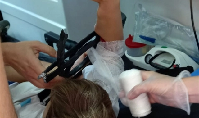 Koluna demir parmaklık saplanan çocuk kurtarıldı