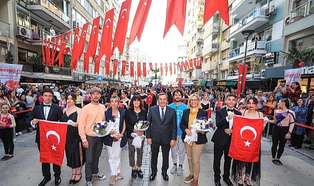 Konak Belediyesi’nin Cumhuriyet Bayramı kutlamaları arasında gençlerin Alsancak’taki etkinlikleri de göz doldurdu. Ali Çetinkaya Bulvarı’nda muhteşem bir flashmob gösterisi yapan Cumhuriyet gençleri, izleyenlerden tam not aldı. Caddede kurulan platformda gerçekleşen gösteriler arasında Melek İzciler, Şirinyer Jimnastik Spor Okulu, - İzmir Rumeli Kadınlar Gençlik Kolları Halk Oyunları Ekibi sahne aldı. İzmir Atatürk Lisesi öğrencilerinin geleneksel vals gösterisi ise büyük alkış aldı.