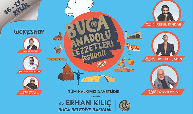 İZMİR’in Buca ilçesi kentin en büyük yeme-içme ve eğlence festivaline ev sahipliği yapacak. Buca Belediyesi tarafından 16-17-18 Eylül tarihlerinde düzenlenecek “Buca Anadolu Lezzetleri Festivali”nde Anadolu’nun dört bir yanından 400 farklı lezzet tanıtılacak. Öte yandan, birbirinden ünlü şeflerle workshopların yapılacağı festivalde, Resul Dindar, Melike Şahin ve Onur Akın sahne alacak.