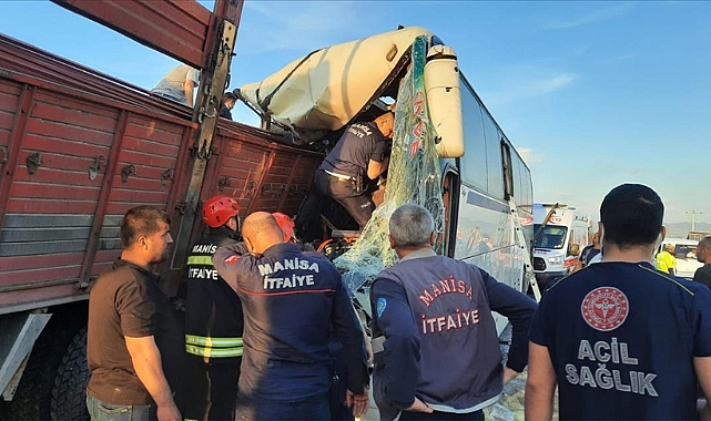 Turgutlu'dan Manisa'daki Organize Sanayi Bölgesi'nde bulunan bir fabrikaya giden işçileri taşıyan 45 J 6405 plakalı otobüs, Bağyurdu OSB kavşağı yakınında demir profil yüklü 45 LT 505 plakalı kamyona arkadan çarptı.