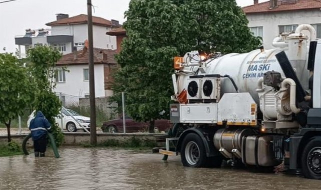 Meteoroloji'nin uyarısı sonrasında Selendi'de dolu ile başlayan ve yoğun sağanak yağışla devam eden yağmurlar ile birlikte MASKİ MAKOM ekipleri ve İtfaiye Dairesi Başkanlığı personeli su birikintilerine müdahale etmeye başladı.