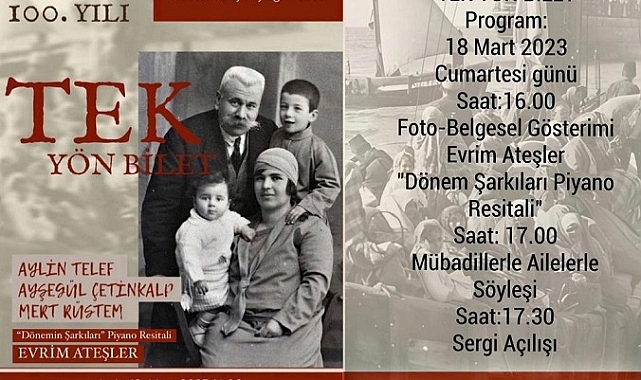 Mübadelenin 100.yılında 'Tek Yön Bilet' Foto-Belgesel gösterimi ve Evrim Ateşleri'nin “Piyano Resitali” 18 Mart-23 Nisan 2023 tarihleri arasında Köstem Zeytinyağı Müzesi’nde gerçekleştirilecek.