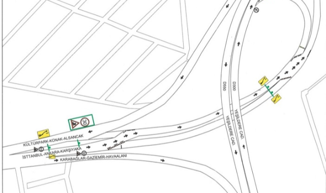 İzmir Ana Kuşaklama Kanalı kolektöründe yapılacak temizlik, bakım ve onarım çalışmaları kapsamında 14 Eylül Salı gecesinden itibaren Yeşildere'den Mürselpaşa Bulvarı'na dönüş yolu trafiğe kapatılacak. Yeşildere Caddesi'nden Basmane yönüne gitmek için eski DGM Binası önünden ya da Halkapınar köprüsünün altından dönüş yapılabilecek. Mürselpaşa Bulvarı'ndan Karşıyaka-Bornova yönüne gidiş yolu, çalışma süresince karşı şeride alınacak. Trafik düzeninin 15 gün içinde normale dönmesi planlanıyor.
