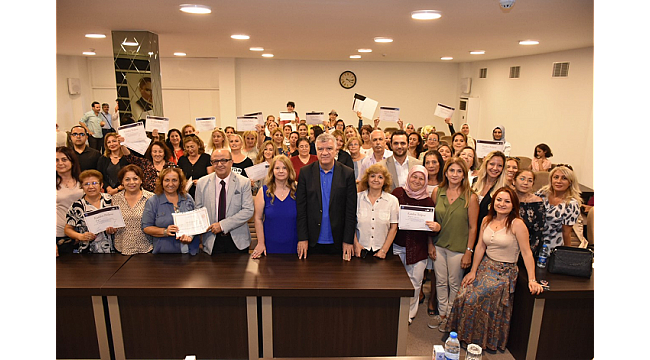 Narlıdere Belediye Meclis Salonu’nda gerçekleşen sertifika törenine Narlıdere Belediye Başkanı Ali Engin, eşi İlke Engin, CHP İlçe Başkanı Şahin Fırat, İzmir Büyükşehir Belediyesi Sosyal Projeler Daire Başkanı Aytuğ Balcıoğlu, Narlıdere Halk Eğitim Merkezi Müdürü Selahattin Cilasin, İBB Meslek Fabrikası Müdürü Zeki Kapı, meclis üyeleri ve kursiyerler katıldı. İzmir Büyükşehir Belediyesi’nin Meslek Fabrikası ile ortak yürütülen Hediyelik Eşya, Yöresel Gıda, Hijyen kurslarına katılan 60 kadına sertifikaları verildi. Kurslar kapsamında üretilen ürünlerin, kooperatif bünyesinde, kadınlar tarafından satışa sunulacağı belirtildi.
