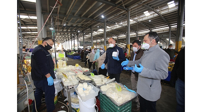 Karabağlar Belediyesi ile Gıda Mühendisleri Odası İzmir Şubesi'nden bir heyet, zabıta ve güvenlik güçleri eşliğinde Yunus Emre Kapalı Pazaryeri'yle Yeşilyurt Semt Pazarı'nda inceleme yaptı. Sabahın erken saatlerinde başlayan çalışmada, alınan yeni önlemler hem esnafa hem de vatandaşlara anlatıldı. Pazaryerlerine tek bir noktadan giriş yapılıp farklı bir noktadan çıkılabileceği, alışveriş süresinin mümkün olduğunca kısa tutulması gerektiği belirtildi. Ayrıca esnafın maske ve eldiven takıp takmadıkları, tezgah aralarını en az 3 metre bırakıp bırakmadıkları kontrol edildi. Vatandaşların maskesiz pazaryerlerine girmesi engellenirken, açıkta ürün satışına izin verilmedi. Zabıta, bekçi ve polisler, genelgeler uyarınca yaş kısıtlamalarına takılan vatandaşları da evlerine dönmeleri gerektiği yönünde uyardı.