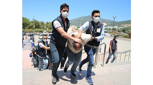 Aralarında kadınların da bulunduğu 19 zanlı, işlemlerin ardından Komiser Hamdi Bey Polis Merkezi Amirliğinden alınarak yoğun güvenlik önlemi altında Bodrum Adliyesi'ne götürüldü. Şüphelilerden F.Ö'ye çelik yelek giydirildiği, polislerin ise yakalarına şehit polis memuru Ercan Yangöz'ün fotoğrafını taktıkları görüldü.