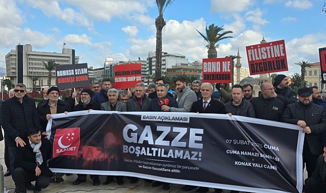 Bu kapsamda ellerinde Filistin bayrakları ve Filistin'e destek mesajları içeren dövizler taşıyarak Konak Meydanı’nda toplanan Saadet Partisi İzmir Teşkilatı adına konuşan İl Başkanı Zekeriya Hazırbulan, Siyonist İsrail tarafından Gazze’de uygulanan soykırımın 467 gün sürdüğünü ve katil İsrail’in kadın, çocuk, yaşlı demeden 50 binin üzerinde Gazzeli mazlumu katlettiğini hatırlattı. Gazze’de binalar yıkıldıkça insanlığın temel değerlerinin de yıkıldığına ve Gazzeli mazlumlarla beraber vicdanın da öldüğüne dikkat çeken Hazırbulan, “Atılan her bombada Batı’nın demokrasi, insan hakları, hukuk kavramları da yerle yeksan oldu. Hastanelere sığınanlara ölüm yağdırıldı. Yüz binlerce mazlum açlık, susuzluk ve soğukla sınandı. Bütün bunlar olup biterken Türkiye başta olmak üzere bölge ülkeleri ve dünya ülkelerinin çoğu ya sessizliği ya da suya sabuna dokunmayan kınamaları tercih etti. Devekuşu Paradoksu ile çözüm bulunacağı zannedilmiş, soykırım görmezden gelinmiştir.” dedi.